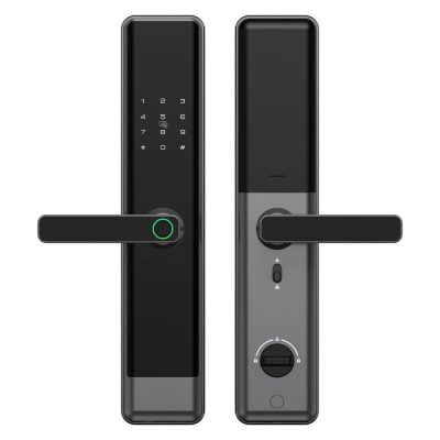– Mở cửa bằng 5 tính năng : mật mã, vân tay, thẻ từ, chìa khoá cơ dự phòng và liên kết với Smart phone mở khoá từ xa (Tuya Smart)