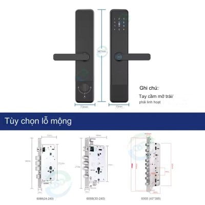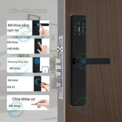 • Tích hợp 5 tính năng: mật khẩu, vân tay, thẻ từ và chìa khóa cơ dự phòng, mở qua App điện thoại