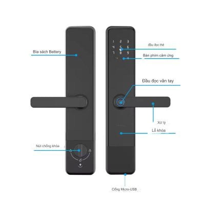• Hỗ trợ lên đến 100 mật mã, 100 vân tay và 100 thẻ từ